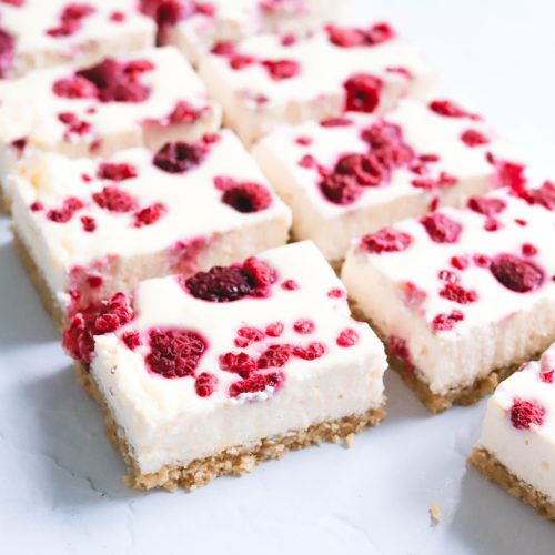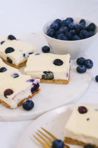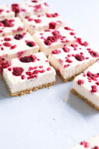 I’ve done part Greek yoghurt, part cream cheese. This combination lightens up the dessert quite a bit and you still get the classic cheesecake taste. Of course, there is nothing wrong with a traditional cheesecake – all about balance and moderation – but if I can swap some ingredients and lessen the sugar amount I always like to give it a go.
